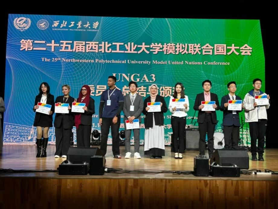 近日,由西北工业大学模拟联合国基地主办的第二十五届西北工业大学模拟联合国大会(NPUMUN)圆满举行。多名国际学生代表积极参与,并在大会中表现出色,展现了优秀的国际视野与综合素养。