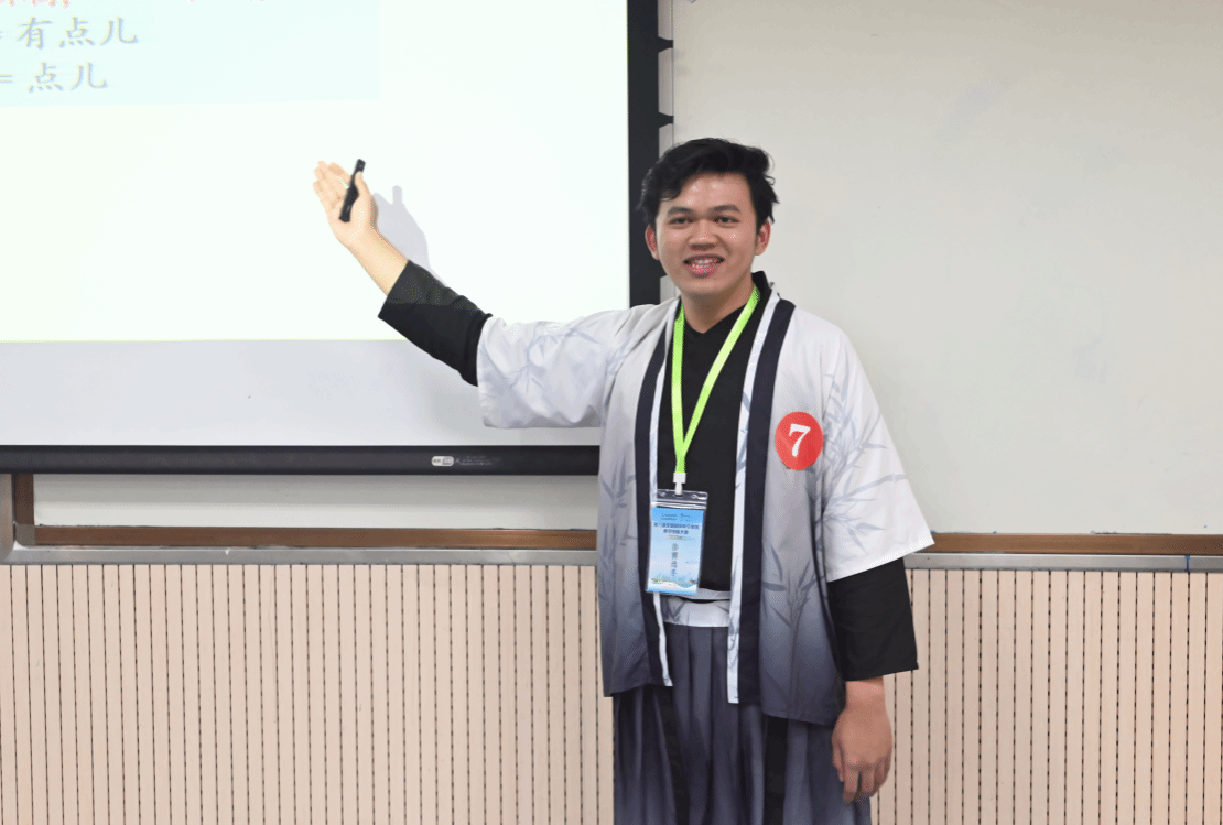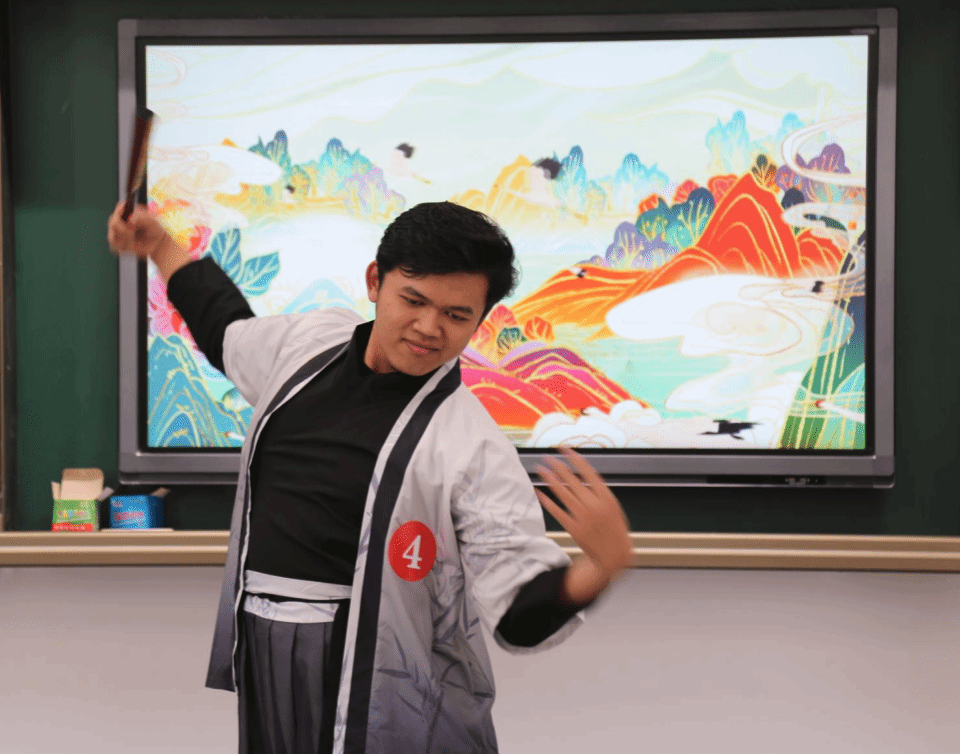 在教学竞技环节中,张义成同学以流利的中文发音、精湛的教学技巧与丰富的课堂互动,出色地完成了说课、讲课与语音专项环节,在问答环节中,能够沉着应对、全面作答,获得评委的一致赞赏。最终的中华才艺展示中,张义成以一曲纸扇舞蹈获得现场阵阵掌声,个人总分在复赛与决赛中均排名小组第一,最终获得大赛一等奖。