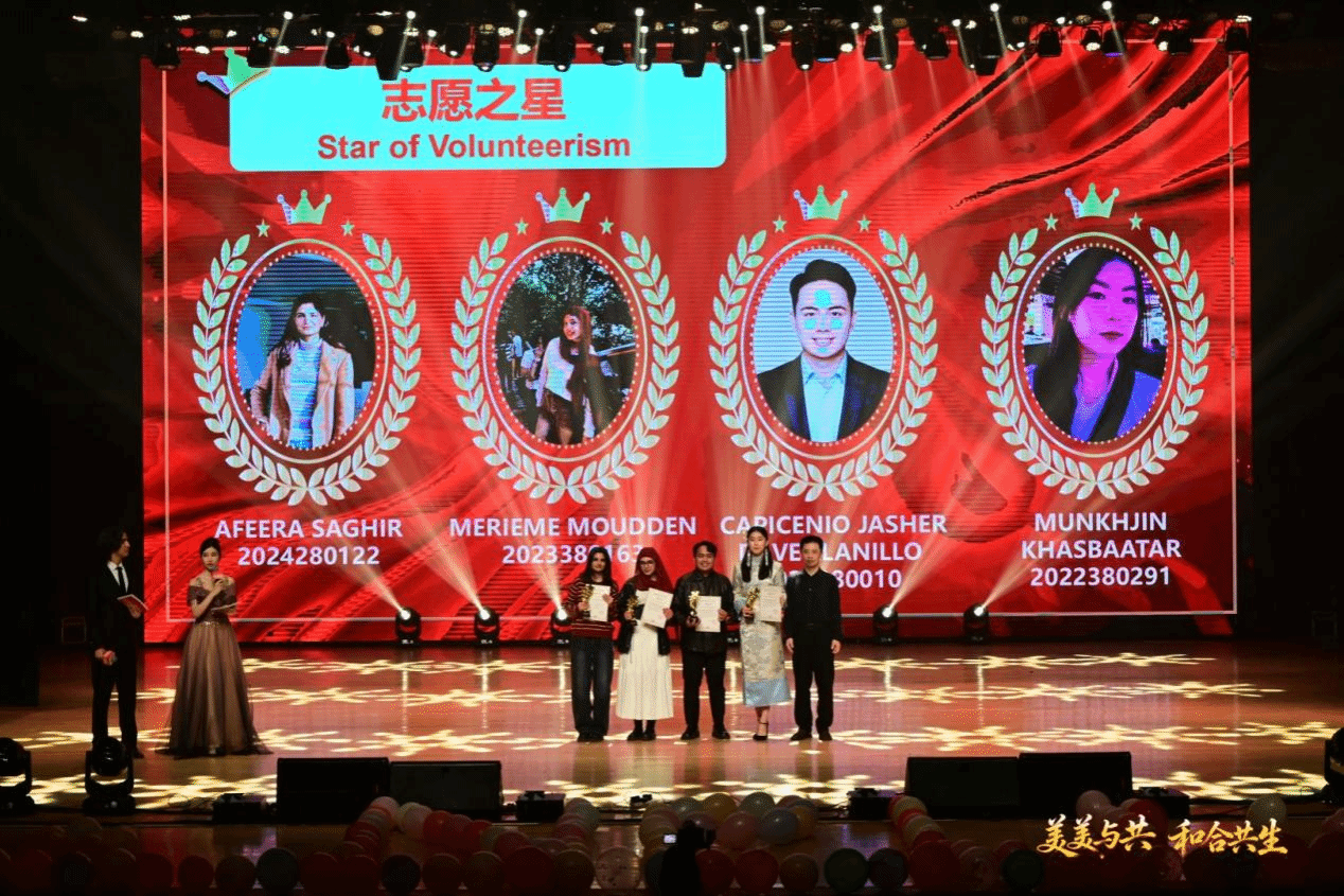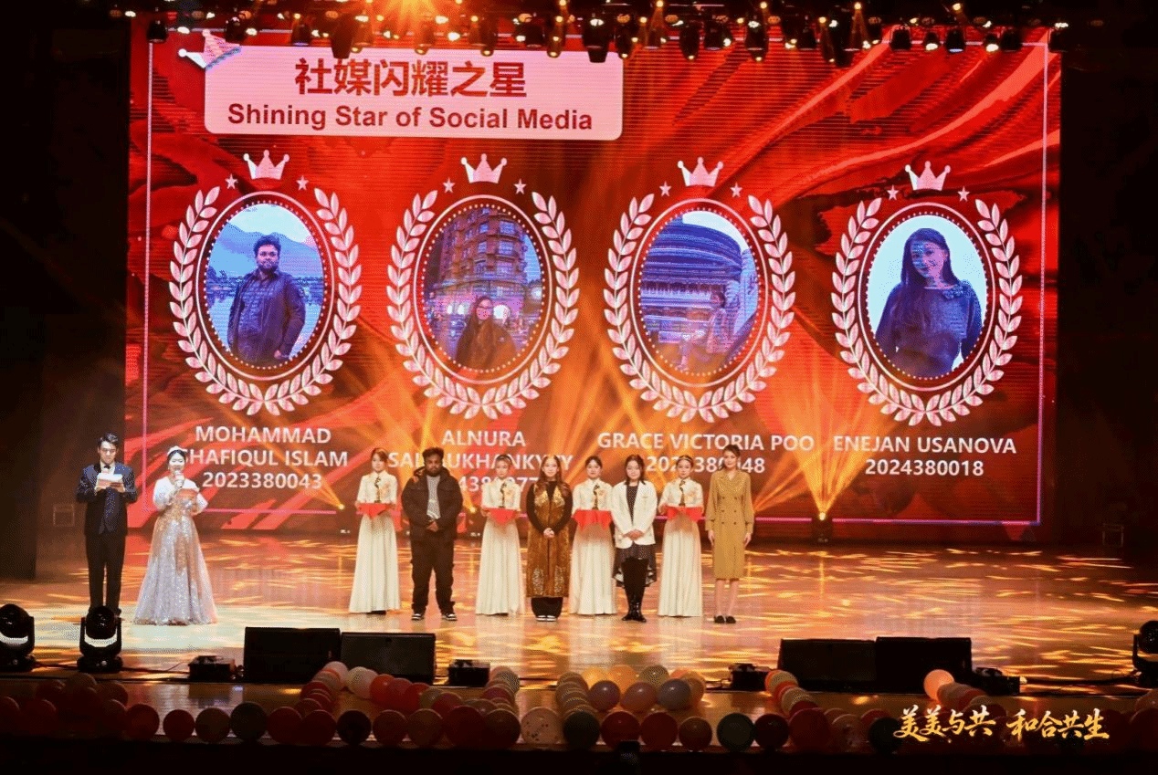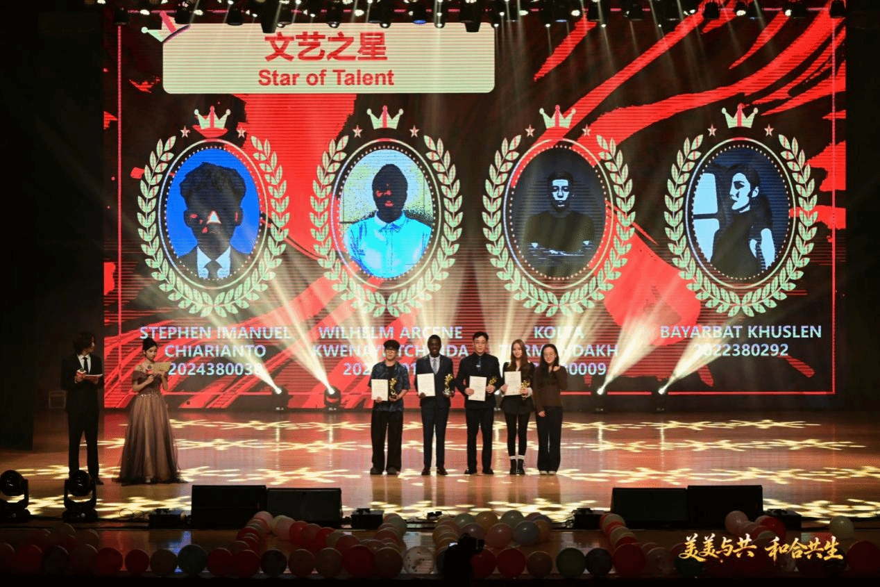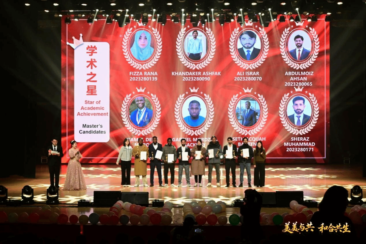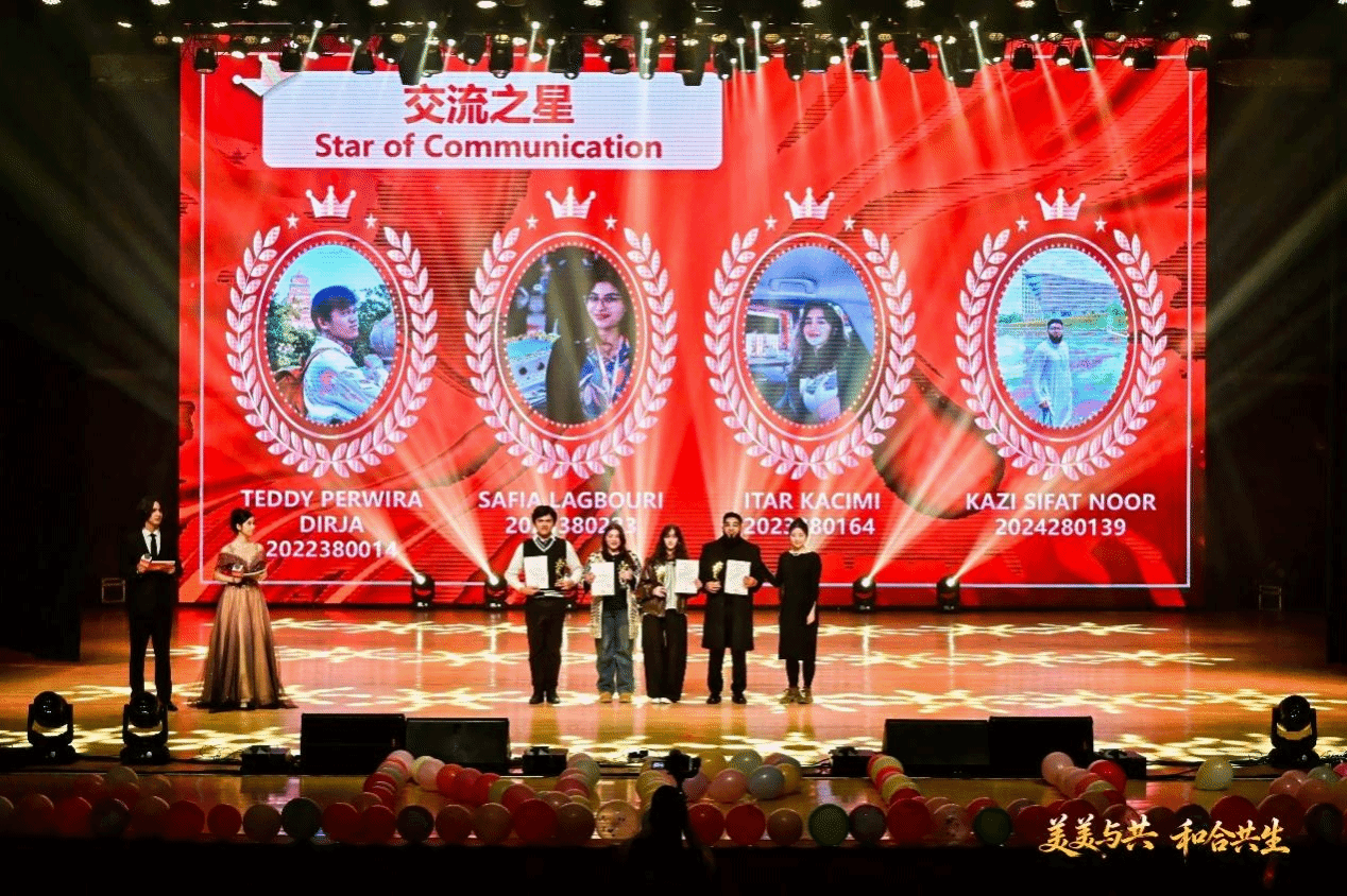 表彰环节同样是晚会的重要组成部分,一批在学业、实践、文化交流等方面表现突出的国际学生获得表彰。他们不仅在专业学习中取得了优异成绩,更在跨文化交流中搭建起友谊的桥梁,成为中外学子互相了解的纽带。
