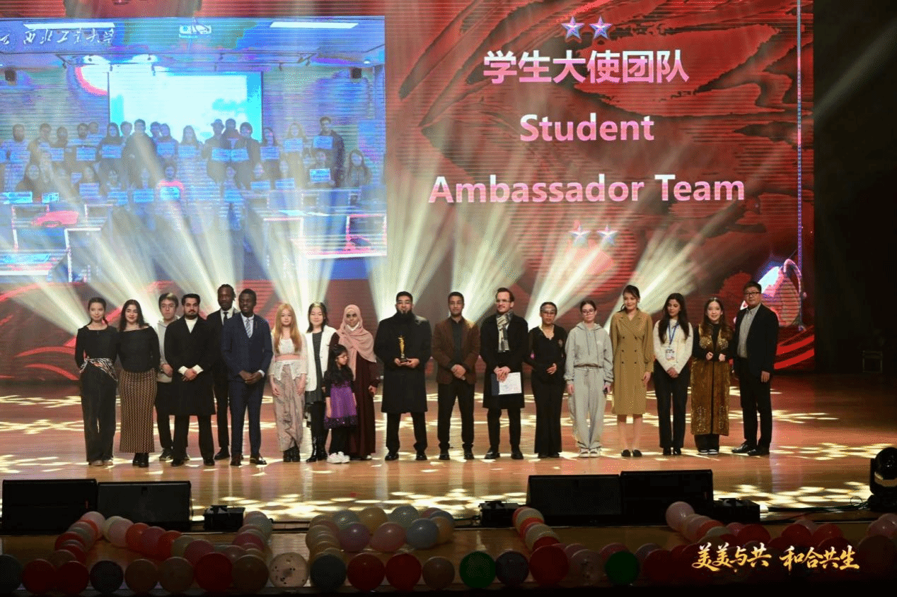 2025年12月19日晚,西北工业大学第十六届中外“文化桥”新年晚会暨优秀国际学生表彰会在长安校区翱翔学生活动中心圆满举行。来自世界各地的学子齐聚一堂,共庆新年,在多元文化的碰撞与交融中,留下了难忘的美好回忆。晚会以“美美与共,和合共生”为主题,传递着中外学子互相尊重、包容互鉴、共同成长的美好愿景。