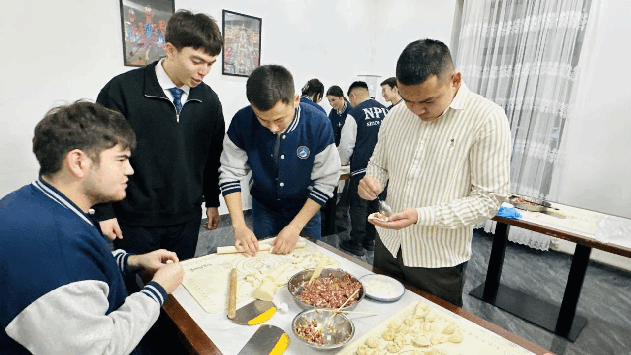 在阿拉木图哈分校,师生共聚一堂,开心学包中国饺子。四溢的香气、暖心的话语,无一不让同学们向往到中国的学习生活。
