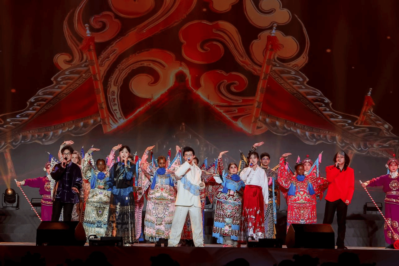 随后的跨年晚会上,国际学生们的精彩亮相成为当晚的一大亮点。由国际学生独立表演的歌舞《Can't Stop The Feeling》节奏明快,展现了国际学子热情洋溢的精神风貌;而国际学生与大学生艺术团合作的节目《国风超有戏》,则将传统戏曲与现代艺术形式巧妙融合。中外学生在舞台上的默契配合,不仅呈现了一场视听盛宴,更生动诠释了校园文化中多元包容与交流互鉴的深刻内涵。